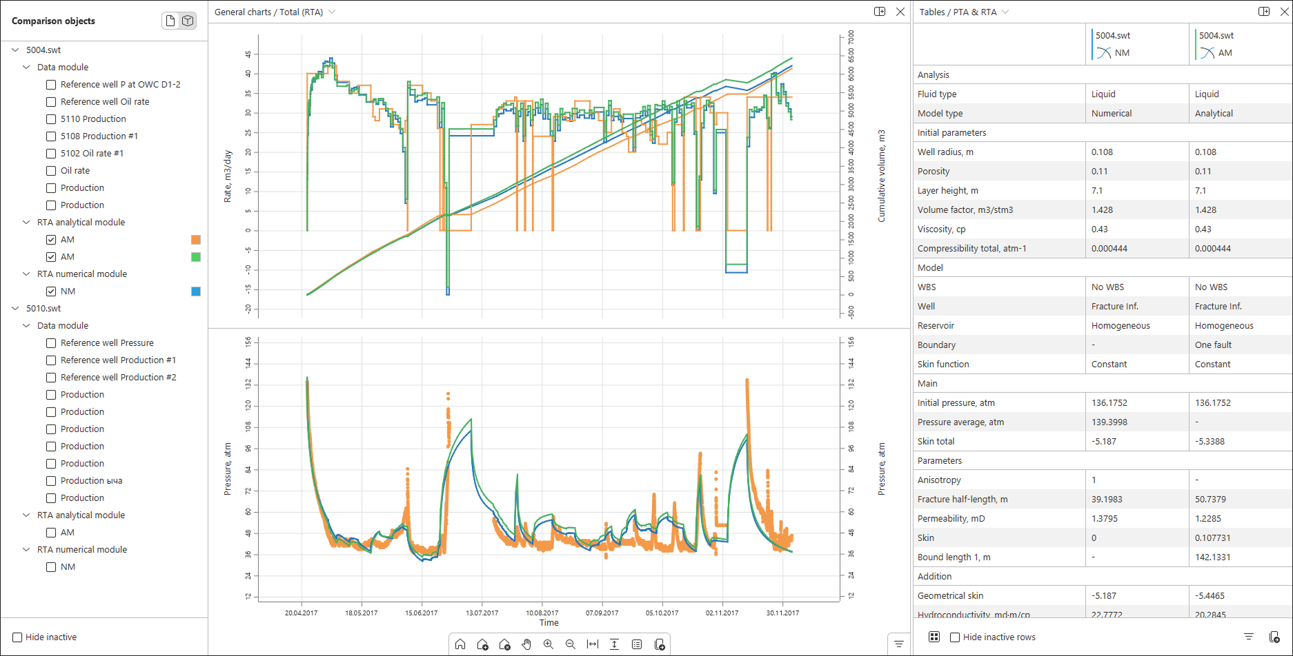 The PTA (Pressure Transient Analysis), RTA (Rate Transient Analysis), and pressure/rate generation modules have been enhanced with numerical flow simulation capabilities. This allows for detailed consideration of reservoir geometry and spatial heterogeneity of properties.